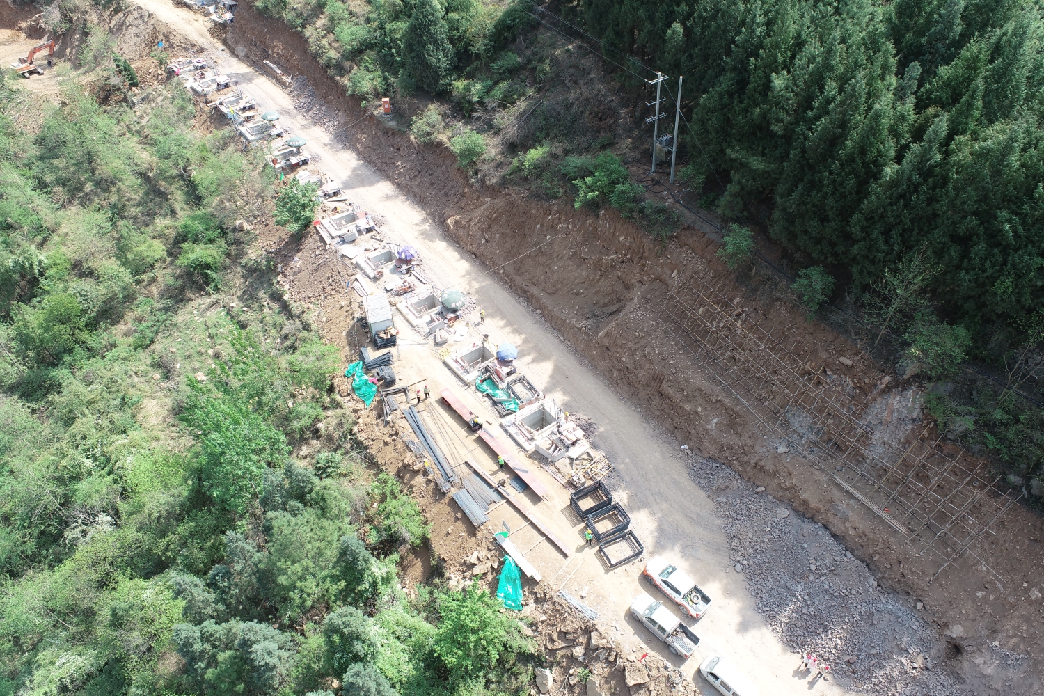 截至目前,高坑口項(xiàng)目已完成路基工程土石方開挖39%,混凝土擋防工程26%,邊溝及排水溝4%,涵洞完成6道,橋梁下部結(jié)構(gòu)完成20%。李家壩隧道掌子面實(shí)現(xiàn)貫通,完成仰拱272m、路面基層222m、二次襯砌486m,隧道工程共完成97.8%。