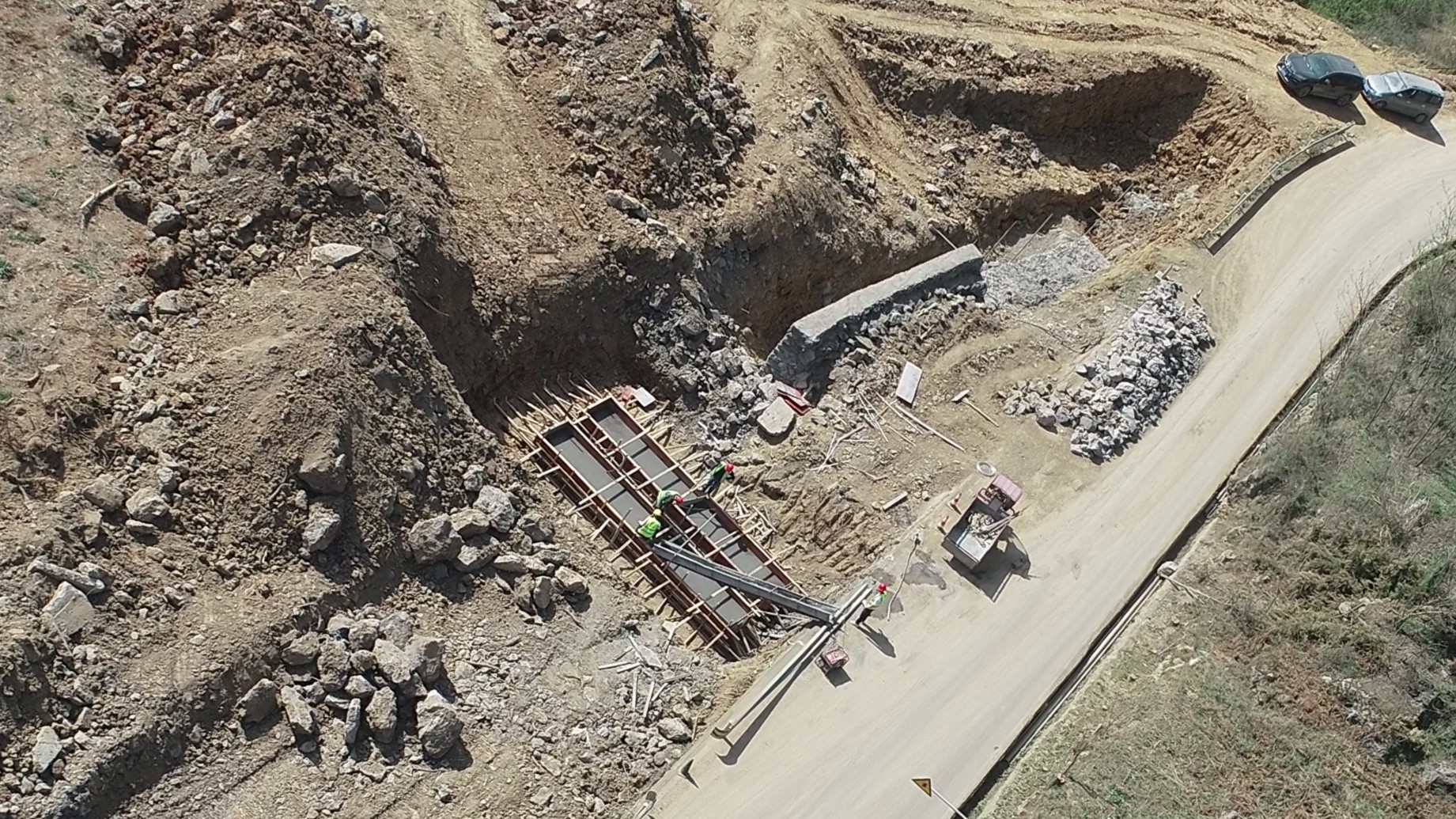 目前正在進(jìn)行主線路基開挖,完成蓋板涵預(yù)制85塊,占總數(shù)52%;擋防工程5023方,占總數(shù)31%;土石方開挖6.5萬方,占總數(shù)12%,利用土石方1.5萬方,占總數(shù)11.5%;場鎮(zhèn)段400米右幅底層6cm油面鋪設(shè)。